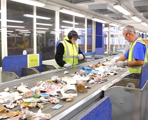 un tri à la main est effectué afin d'extraire les indésirables et les déchets recyclables autres que les papiers. Au final, il ne reste plus que les papiers sur la chaine.