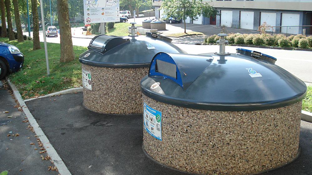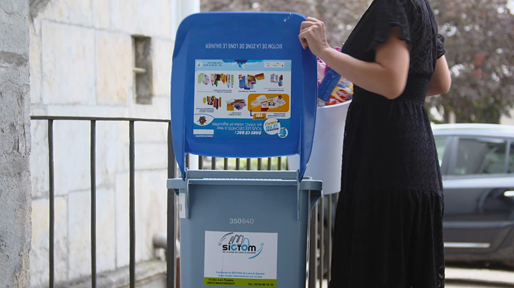 - Bacs bleus ou jaunes pour les déchets recyclables